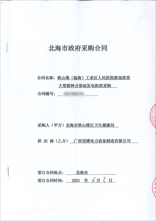 2021年6月3日,廣西頂博電力設(shè)備制造有限公司與北海市鐵山港區(qū)衛(wèi)生健康局成功簽訂一臺(tái)500KW