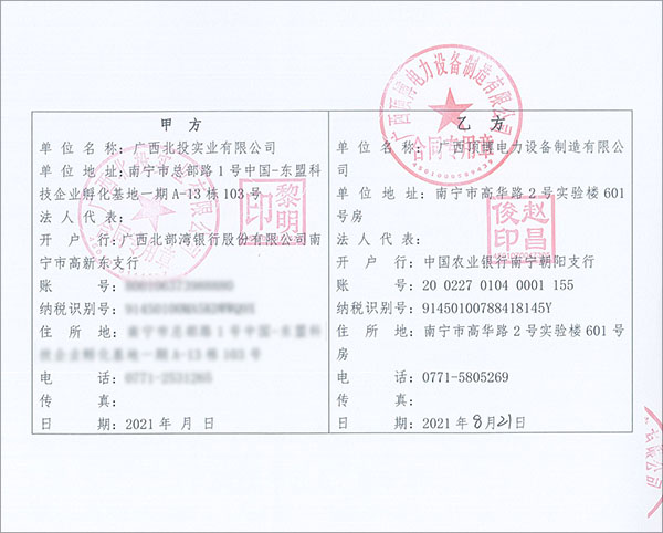 2021年8月21日,頂博電力與廣西北投實(shí)業(yè)有限公司成功簽訂一臺(tái)120KW