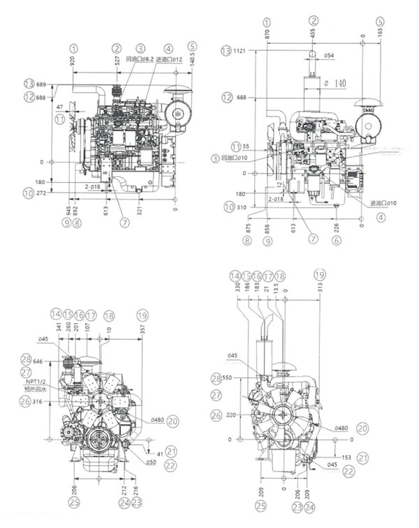 1 | 出水管膠管端面到飛輪殼端面水平距離 | 920 | 870 |
